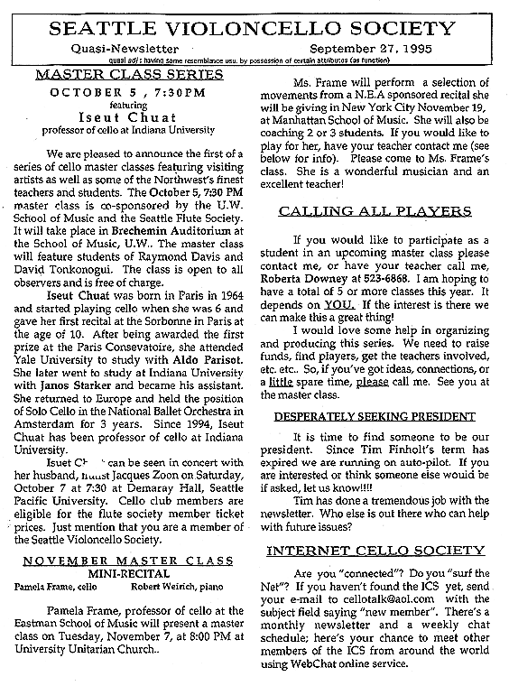 SEATTLE CELLO SOCIETY NEWSLETTERS