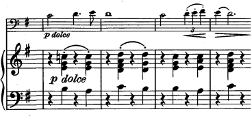 TJ: Some people like to make a slight break or a reduction in sound between the notes in the opening phrase of the Brahms Sonata so that the piano's off-beat chords come out more clearly. Do you play this phrase with a more unbroken sound?