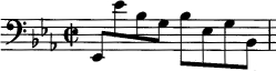 Another Golden Rule is that you should use only the minimum amount of movement necessary for the articulation required. We are often taught the general principle that the way to be relaxed is to have lots of intricate motions in the fingers, knuckles, and so on (i.e. the "Paintbrush Technique") in order to create smooth bow changes. Now this may be helpful in certain slow passages, but it can be counter-productive in pieces like the Prelude from the Fourth Bach Suite (see Example 8). With so many bow and string changes, having a very "flexible" hand and wrist motion will actually make sound production harder and more tiring.