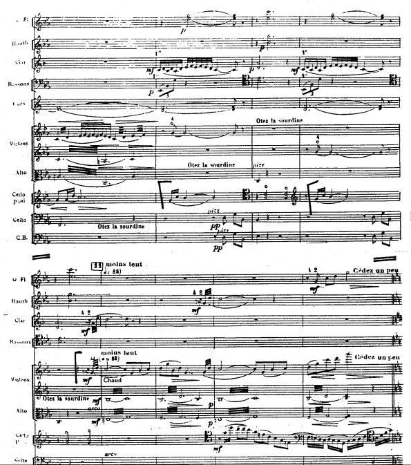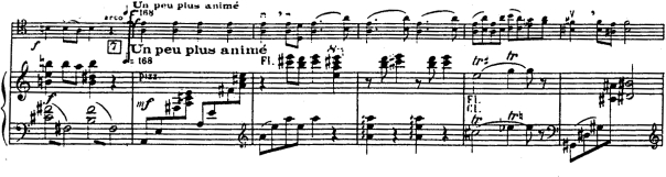 The opening theme, as Cras calls it, gives way at measure 12 to la douce mélodie d'un second motif, 3 indicating that he differentiated between themes and motives: