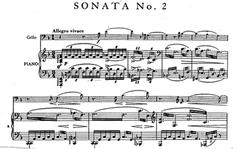 2. J'ai débuté dans la sonate pour violoncelle par le Final. Il est composé dans son ensemble, et je suis � la période o� je ne sais si je dois continuer sur le chemin o� je suis avancé, [ou] si j'en ai pris un mauvais. C'est un moment désagréable o� mon esprit est tant�t persuadé que c'est bien, tant�t au contraire, que je dois recommencer complètement. Correspondence, Vol. I, p. 92.