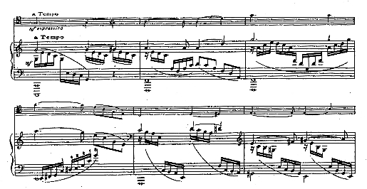 In what the composer himself calls the development section, 7 the second motive from the second movement transforms into a broad melody which Cras superimposes contrapuntally over all his other melodies and their derivatives until the sonata ends peacefully in E major, on the plagal minor cadence, the flatted subdominant to the tonic. Cras' technique of recalling most or all of his motives at the end of a composition stems, quite assuredly, from his faithful study of Beethoven's masterful string quartets.