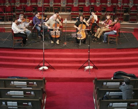 A recording engineer must also be very sensitive to the musicians. Abeshouse, who's also a professional violinist, has a particular advantage because he knows what recording sessions are like from a musician's standpoint. Playing the same phrase or movement over and over again is tiring, so Abeshouse is always gauging the emotional state and energy level of the musicians, which can also be affected by whatever's going on in a musician's personal life. He has to know when to ask for another take and how to delicately point out questionable intonation and shaky ensemble moments.