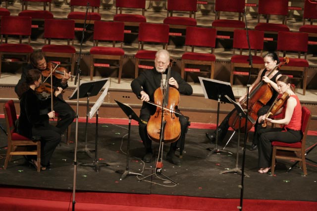 Given the drama that led up to this concert, which featured cellists Lynn Harrell, Zuill Bailey, and Shauna Rolston, it is a testament to the professionalism of each and every musician that the concert was a brilliant success. Dropped recording equipment, struggles with balancing work and family, a critically ill baby, and cracked instruments provided an undercurrent of hair-trigger tension that, if released, could have caused the performers to scatter in despair. Those of us who were not in the center of one of these storms found ourselves treading very lightly so as to avoid being the catalyst for the unraveling of this special event.