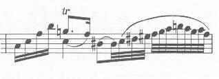 Her tempo for the Gigues was around 96 beats per minute (dotted quarter notes), which made the D Major Gigue incredibly challenging to play (as if it isn't challenging at a slower tempo!). The gigues have a strong sense of a pulse, but they often lapse into purely instrumental works (i.e. measure 21 of the C Major Gigue, see Example 5), so they are not ideal for dancing. Modern choreographic elements would be needed if the gigues were to be danced to.