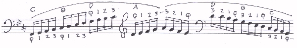 Example 3c - D Major Scale Exercise -- Third and Fourth Phrases