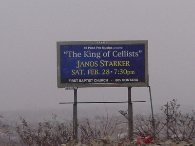When Bailey first approached Starker with the idea of playing in El Paso two years ago, there was a lot of discussion about what the program would be. Starker, who is almost 80 years old, was not inclined to do a full recital. Instead, he preferred to play chamber music. Since he was to be the centerpiece of the concert, it was agreed that the program would feature the cello. In fact, each piece would feature two cellos, in which he would play the first cello part: